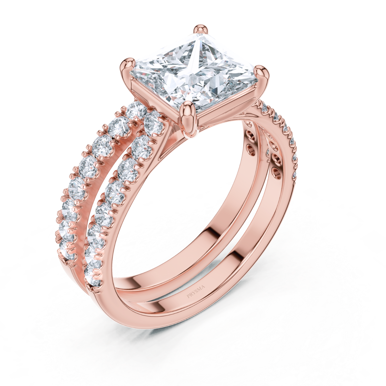 princess-cut diamond is set in a secure four-prong setting, allowing maximum brilliance and light reflection. The split-shank band, adorned with a cascade of round-cut diamonds, adds a dazzling touch of luxury. Crafted in [Metal Type: White Gold, Yellow Gold, Rose Gold], this stunning ring is designed for those who appreciate fine craftsmanship and sophisticated beauty.