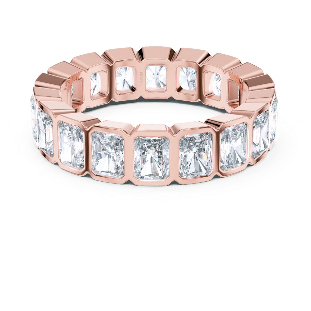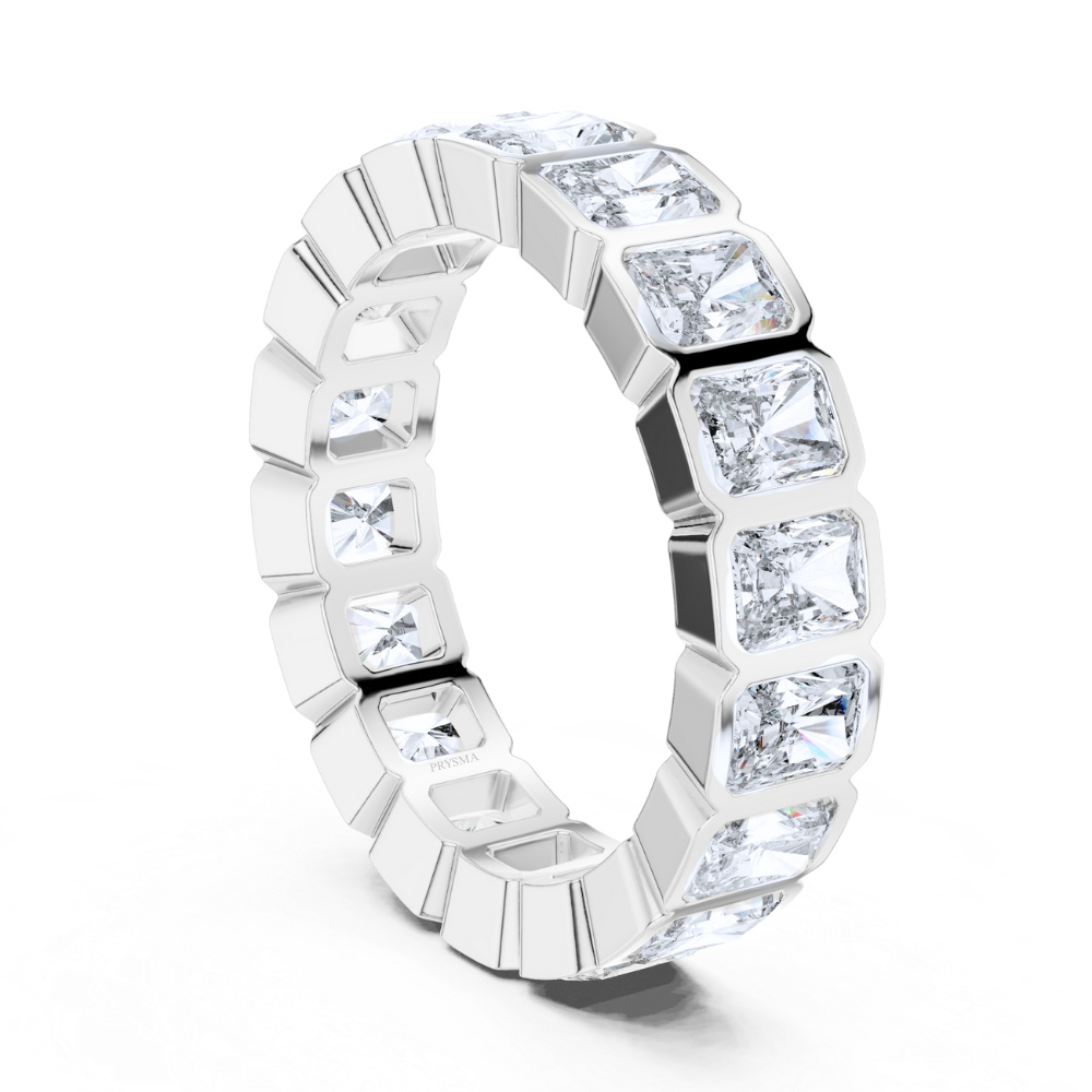 This eternity Ring features a continuous stream of radiant diamonds, each securely bezel-set in glowing Yellow Gold, Rose Gold, White Gold. The elongated facets catch the light with mesmerizing brilliance, while the sleek geometric design lends a modern, elegant feel. Perfectly crafted for those who appreciate both strength and sophistication, this ring is a powerful symbol of enduring love and timeless beauty.
